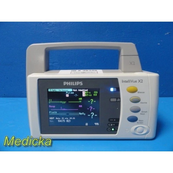 Item: | 2018 Philips IntelliVue X2 M3002AU Monitor W/ ECG/RESP, NBP, SpO₂, Temp, IBP Leads |