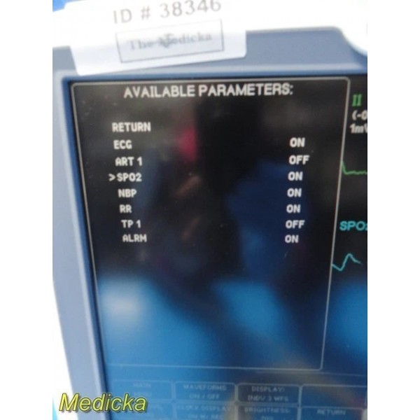 Active Parameters (depending on activation settings): ECG ART / PA (Invasive BP) SpO2 (Masimo SET) NIBP Respiration (RR) Alarms Temperature (TP)