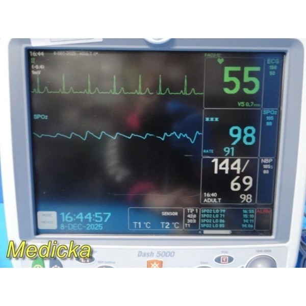 GE Dash 5000 Monitor (2X IBP, NBP, ECG, SpO2, TEMP) W/ NEW Leads ~ 38346