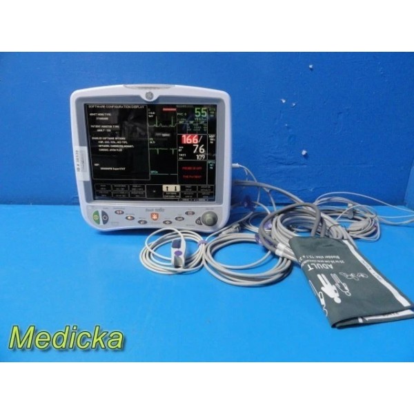 Fully functional GE Dash 5000 bedside patient monitor with Masimo SpO₂, ECG, NIBP, Temp, and 2× IBP capabilities. Printer installed. Includes multiple new compatible accessories. Excellent cosmetic and operational condition.