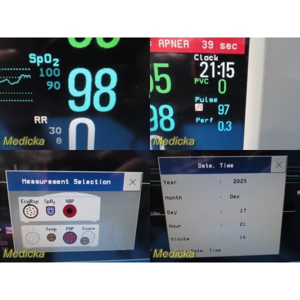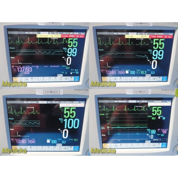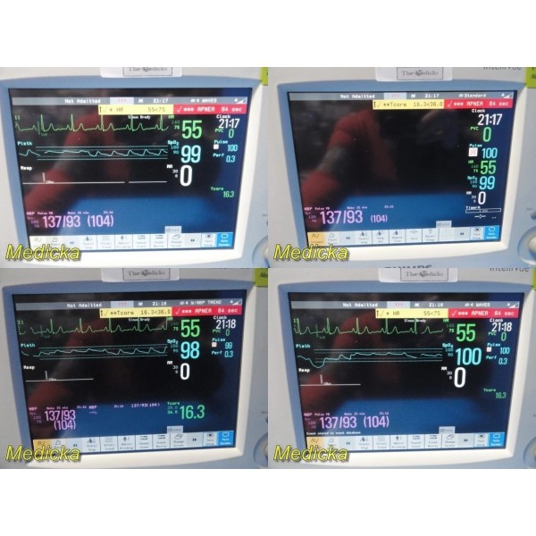 - System-wide measurements supported (based on installed hardware): ECG / RESP SpO₂ (Nellcor OxiMax) NIBP Temperature Invasive Pressure (via extension module)