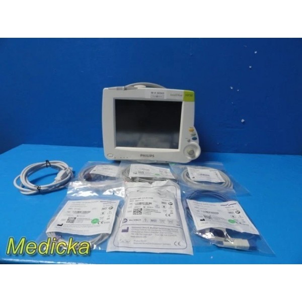 Philips M8002A Intellivue MP30 Monitor W/ M3001A MMS Module & NEW Leads ~ 38363
