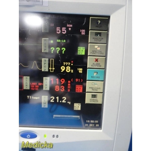 - Installed Parameters: ECG, SpO₂ (Nellcor Type), NIBP (Adult / Pediatric), Temperature T2/T1
