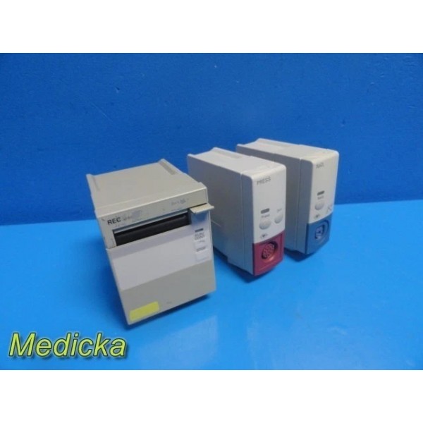 Included SpO₂ sensors and NIBP cuffs are adult size and suitable for adult / pediatric use but not neonatal. System supports neonatal monitoring, but appropriate neonatal accessories should be sourced by the clinical user. Printer is present but untested due to missing paper.