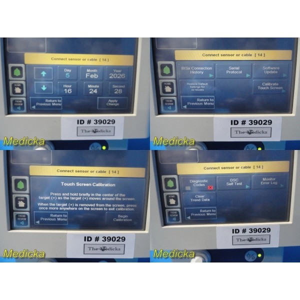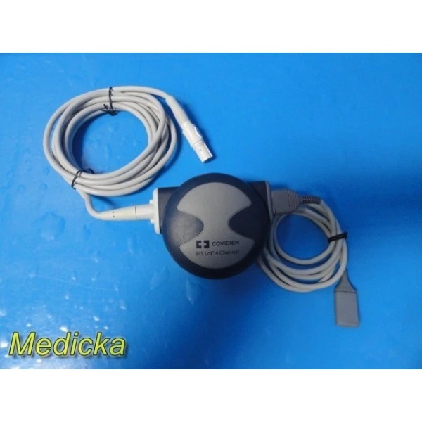 Pre-owned 2015 Covidien BIS Aspect Brain Function Monitor (Ref 185-0151) complete with BIS LOC 4-Channel module, BISx device interface cable, and patient interface cable. Unit powers on properly, initializes normally, and responds to touchscreen and menu commands. LCD display is bright, and the system passed internal self-test. This is a complete monitoring setup excluding patient sensors.
