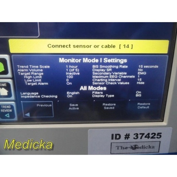 Item: | 2017 Covidien BIS Aspect Monitoring System Ref 185-0151 W/ Bis Loc 4-ch Module + Interface Cable |