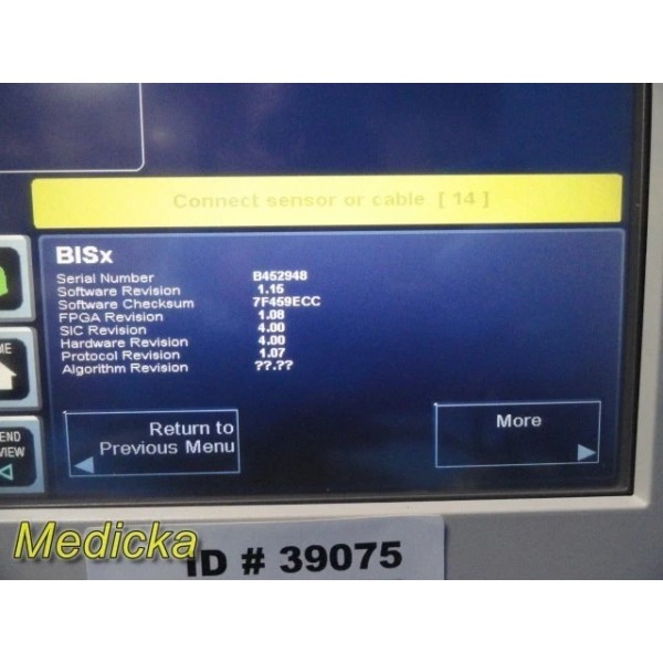 Item: | 2017 Covidien Aspct Ref 185-0151 BIS Vista Monitor W BIS LOC Module 4-ch & 2x Interface Cables |