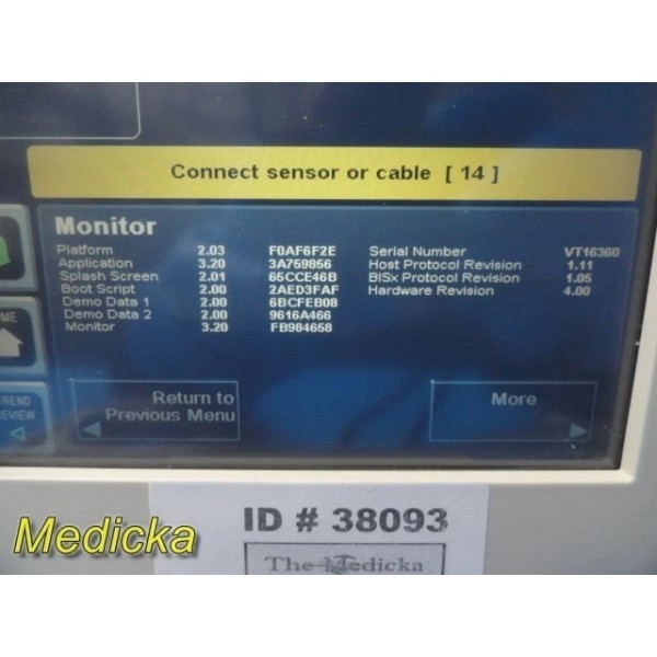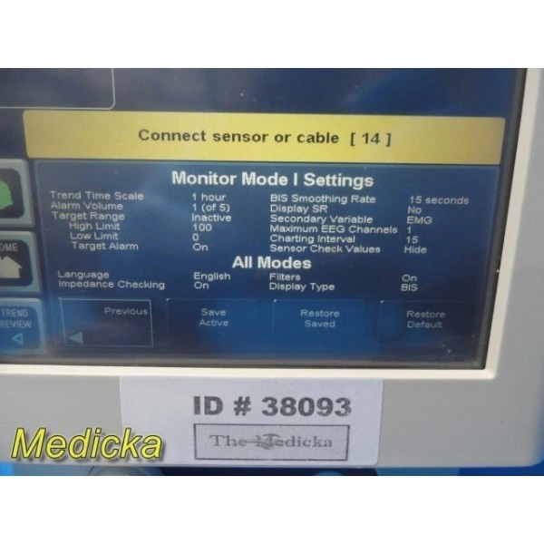 Item: | 2011 Covidien Aspct Ref 185-0151 BIS Vista Monitor W/ BIS Module & Cable |
