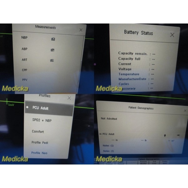Touchscreen navigation works properly. System menus, monitoring settings, and patient profiles are accessible.
