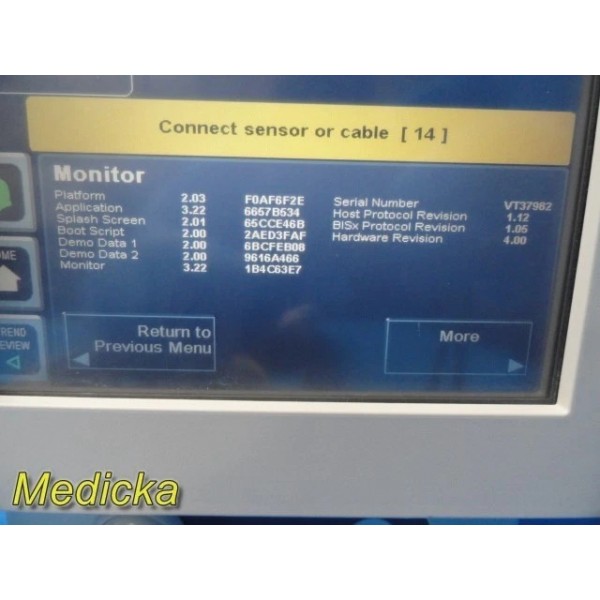 Item: | 2015 Covidien Ref 185-0151 BIS Aspect Monitor W/ BIS LOC 4-Ch Module & Cable |