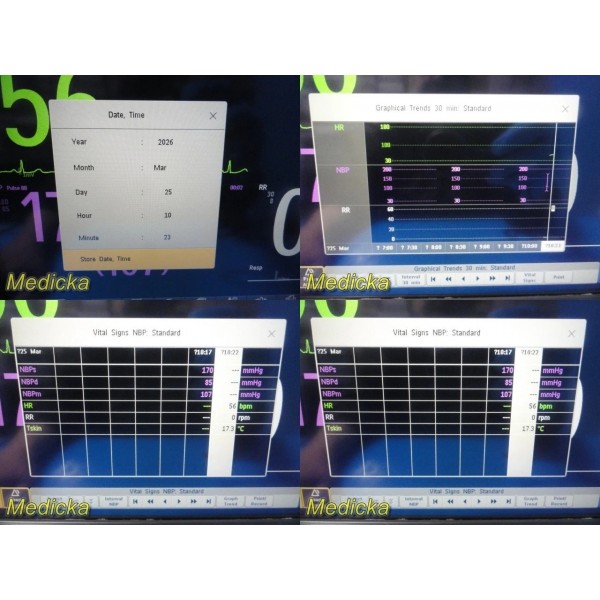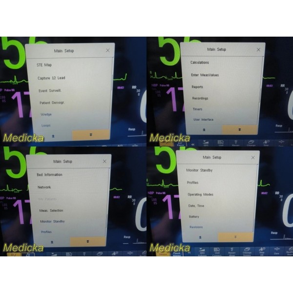 Touchscreen navigation works properly. System menus, monitoring settings, and patient profiles are accessible.