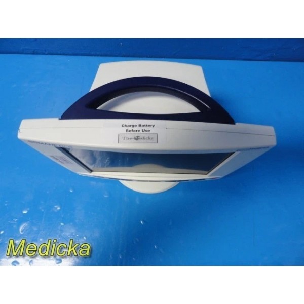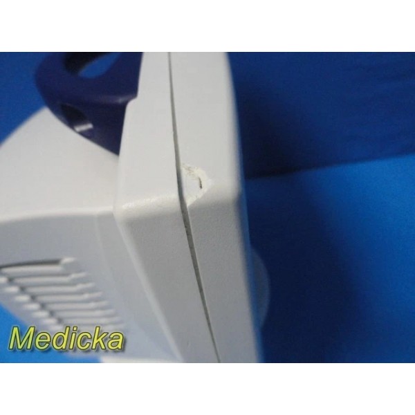 Pre-owned monitor, powers on, passes self-test, and loads software (V7.2.6.0). LCD is bright and scratch-free; casing has a chip at the upper corner. Includes 5100C-PA pre-amplifier with intact housing, clamps, connectors, and long cable. Battery installed and holding charge (recommend charging overnight). Comes with OEM USB flash drive and hospital-grade power cord. No rolling stand, manual, or disposables included.