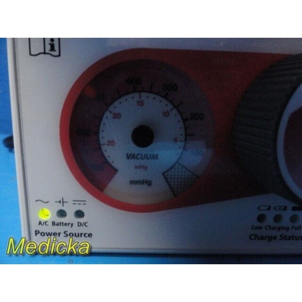 - Easy Go Vac Portable Suction Machine features on or off switch, vacuum control knob, vaccum gauge, external power jack and inline hydrophobic filter