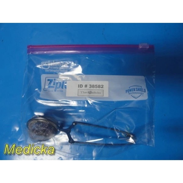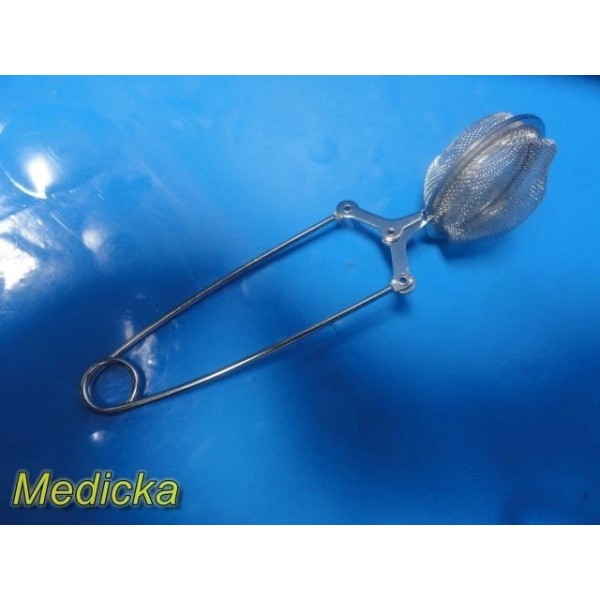 - One stainless-steel mesh clamp with dual hemispherical mesh cups and spring-loaded handle.