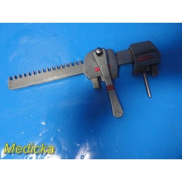 This listing is for a pre-owned Guidant cardiovascular retractor frame only, reference number 040309, made in the USA. This component features a precision ratcheting mechanism and sliding design for use in open cardiovascular or thoracic procedures. Retractor blades are not included. U.S. Patent #5894843 confirms the design as part of a modular retractor system.