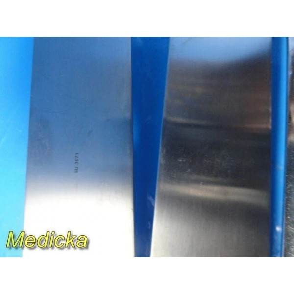 This lot includes 11 Roux double-ended surgical retractors. It consists of 6 V. Mueller SU3670 retractors, 2 V. Mueller SU3671 retractors, 2 Sklar retractors, and 1 unstamped unit. All retractors are approximately 7.5 inches in length, except for one unstamped retractor which measures 8 inches. Constructed from OR-grade stainless steel and made in Germany, these retractors are suitable for soft tissue retraction in general and specialty surgical procedures.