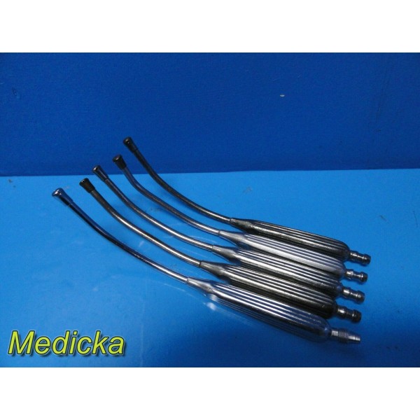 Lot of 5 Yankauer Surgical Suction Tubes (10"), Bulbous Tip, Curved ~ 23629